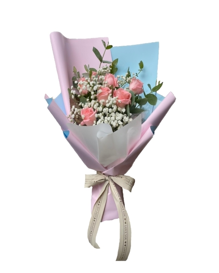 【花材內容】: 粉玫瑰/滿天星/尤加利葉 【注意事項】: 鮮花花材會依季節性變動,或是花材品質欠佳,若遇臨時狀況發生,請允許花藝設計師以其他色系或相同的花材做調整。 【聯絡我們】: 若有任何問題,歡迎加LINE討論!ID:yalia 也歡迎來電洽詢(02) 2705-2290
